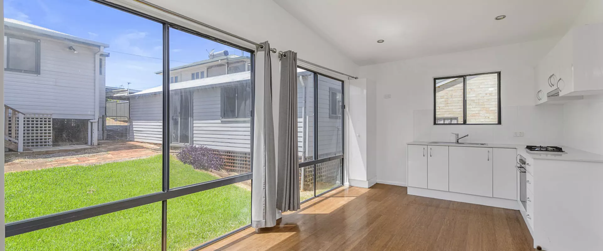 Experience the perfect blend of natural light and modern living. This beautiful 1-bedroom granny offers a spacious and bright living environment. With an emphasis on natural light, the home features large windows and an open-plan design that creates a warm and inviting atmosphere. The contemporary kitchen and living area are perfect for easy care living. The master bedroom has a built-in robe and ceiling fan, with a large window overlooking the enclosed private balcony. Lawn maintenance is included in the weekly rent. Complete with shared laundry and on-street parking only.