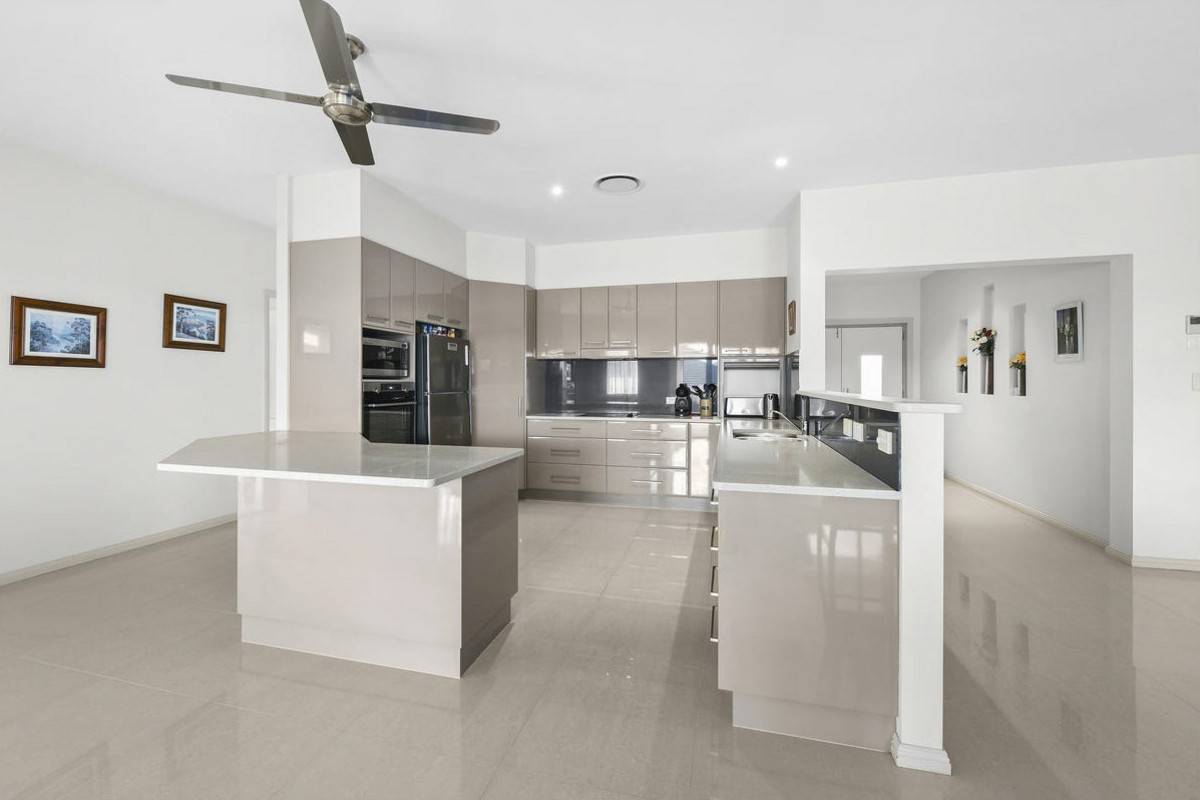 The layout boasts three separate living areas, a large master suite well separated from other bedrooms and a covered entertaining area that has a built-in barbeque.
