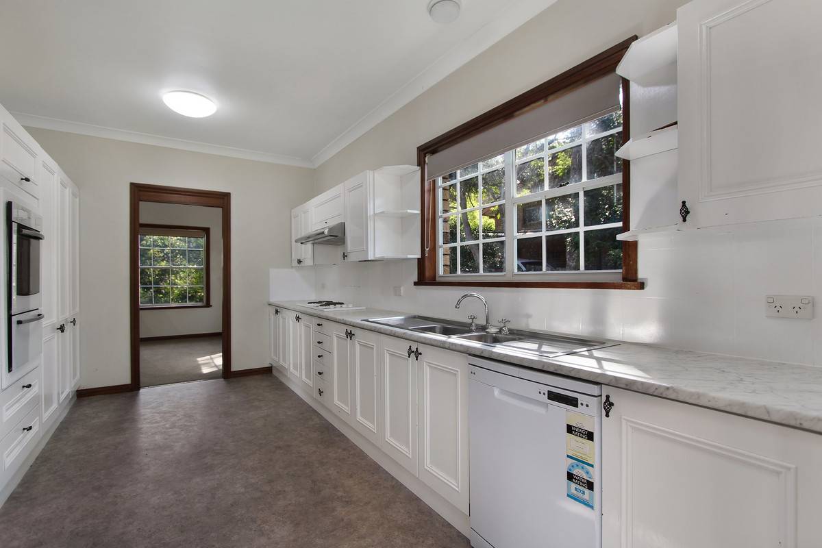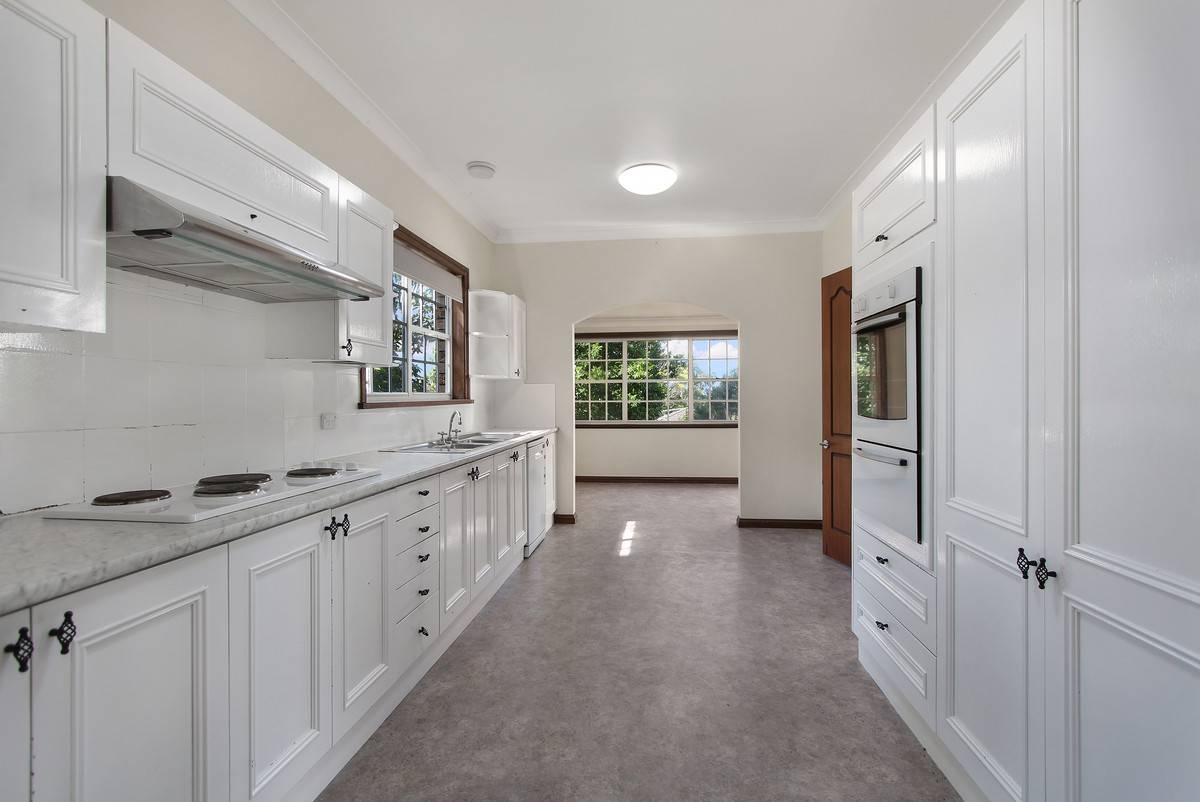 The Hampton style kitchen is set off the side from both living spaces and has been renovated giving it that modern feel. It features a dishwasher, electric cooking, and loads of cupboard space. Set off the kitchen is a family meals room or you could make it into a home office/study nook.