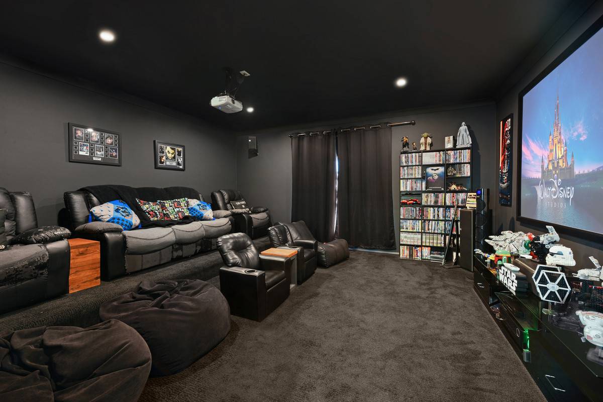 - Theatre room with additional 110-inch projector screen & surround sound system