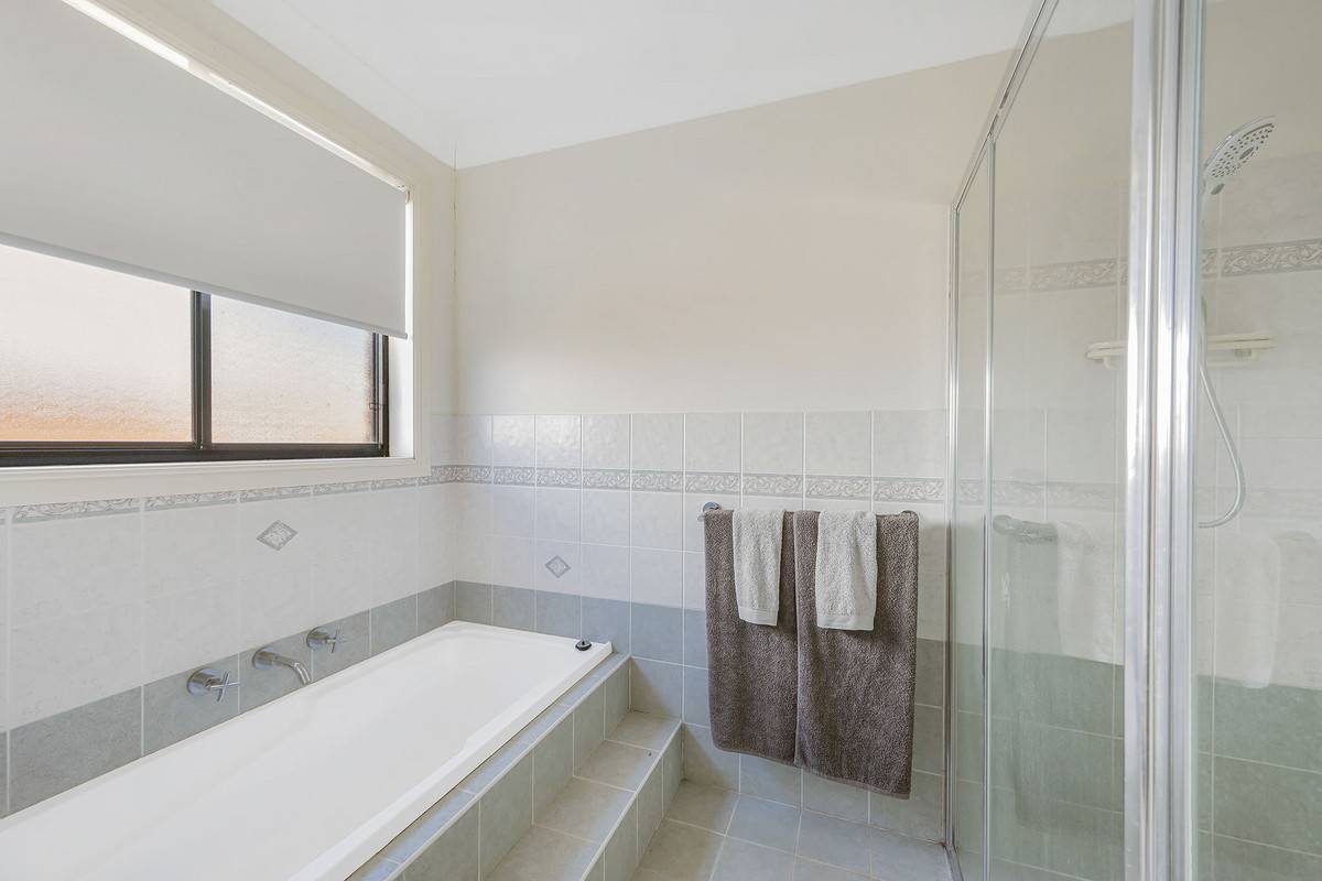 As soon as you enter the home you will be greeted with a large living room with plantation shutters and adjacent is the master bedroom where you walk through to the well-portioned ensuite with a double basin and walk-in shower.