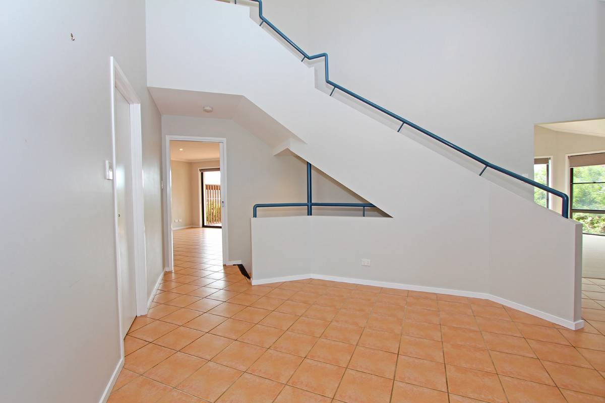 This modern home has multi-levels that provide great family space, with the mid floor being the family hub, consisting of a large carpeted lounge room alongside a tiled meals area.