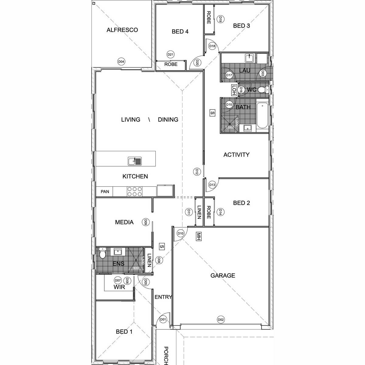 + Open plan living plus private media room